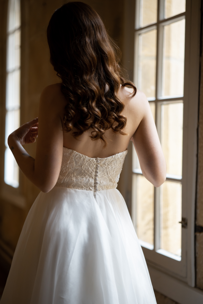 Iris es un vestido que honra la delicadeza del tiempo. Un diseño inspirado en la memoria de lo eterno, que combina la estructura de lo clásico con la ligereza de lo que apenas roza la piel. Pensado para novias que entienden el lujo como silencio, gesto y detalle. Un vestido que no necesita hablar alto para que todo el mundo escuche.